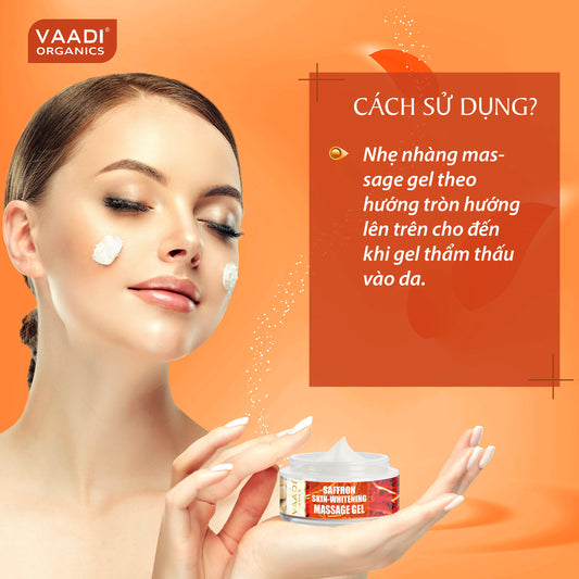 Skin Whitening Organic Saffron Massage Gel with Basil Oil & Shea Butter - Improves Complexion - Reduces Puffiness ( 50 gms/2 oz)