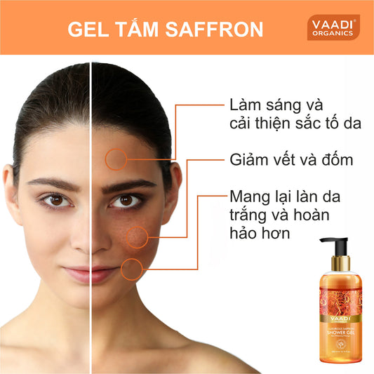 Luxurious Organic Saffron Shower Gel - Skin Lightening Therapy - Reduces Pigmentation Marks (300 ml / 10.2 fl oz)